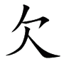 CH’IEN4 (Wade Giles) o Qian (Pin Yin). Es el radical 76. Significa (*780) respirar por la boca bien abierta; Bostezar. Faltar; escasear. Insuficiente; escaso. Faltar a (p.ej. la urbanidad). Adeudar; deber. Deuda. Faltar.
